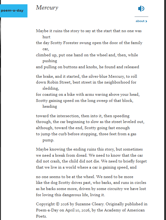 Click on the link to hear the poet read “Mercury”: https://poets.org/poem/mercury.