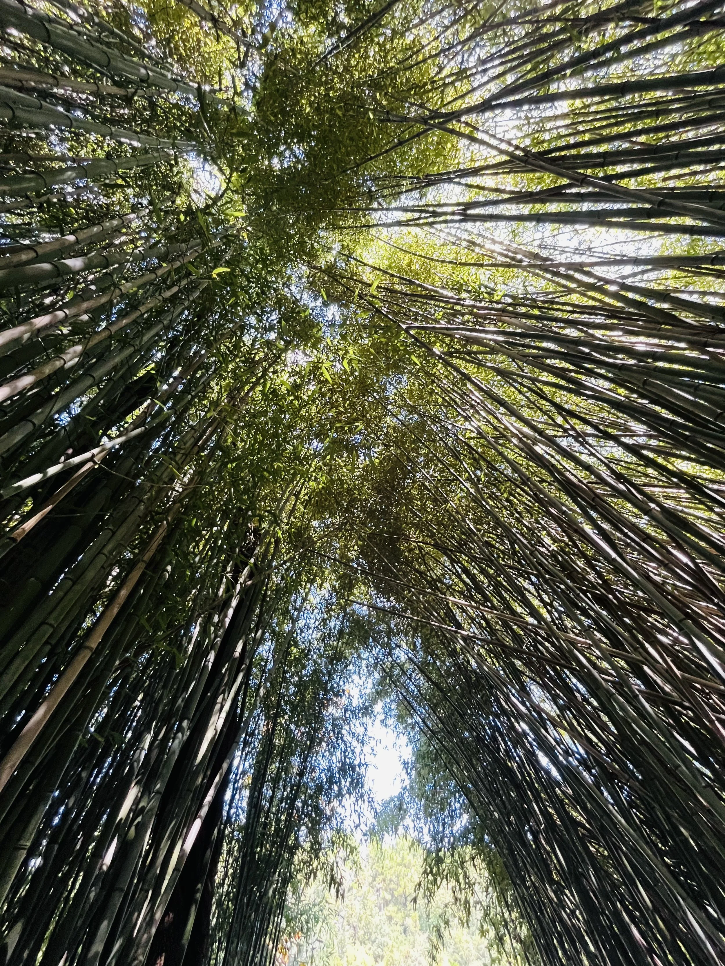 Bonus prompt: describe what it is like standing under this bamboo canopy or whatever this photo inspires.